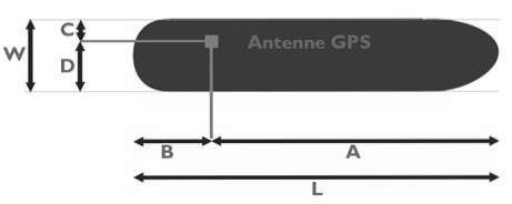 • C = de afstand van de gpsantenne tot aan bakboord (linkerkant);